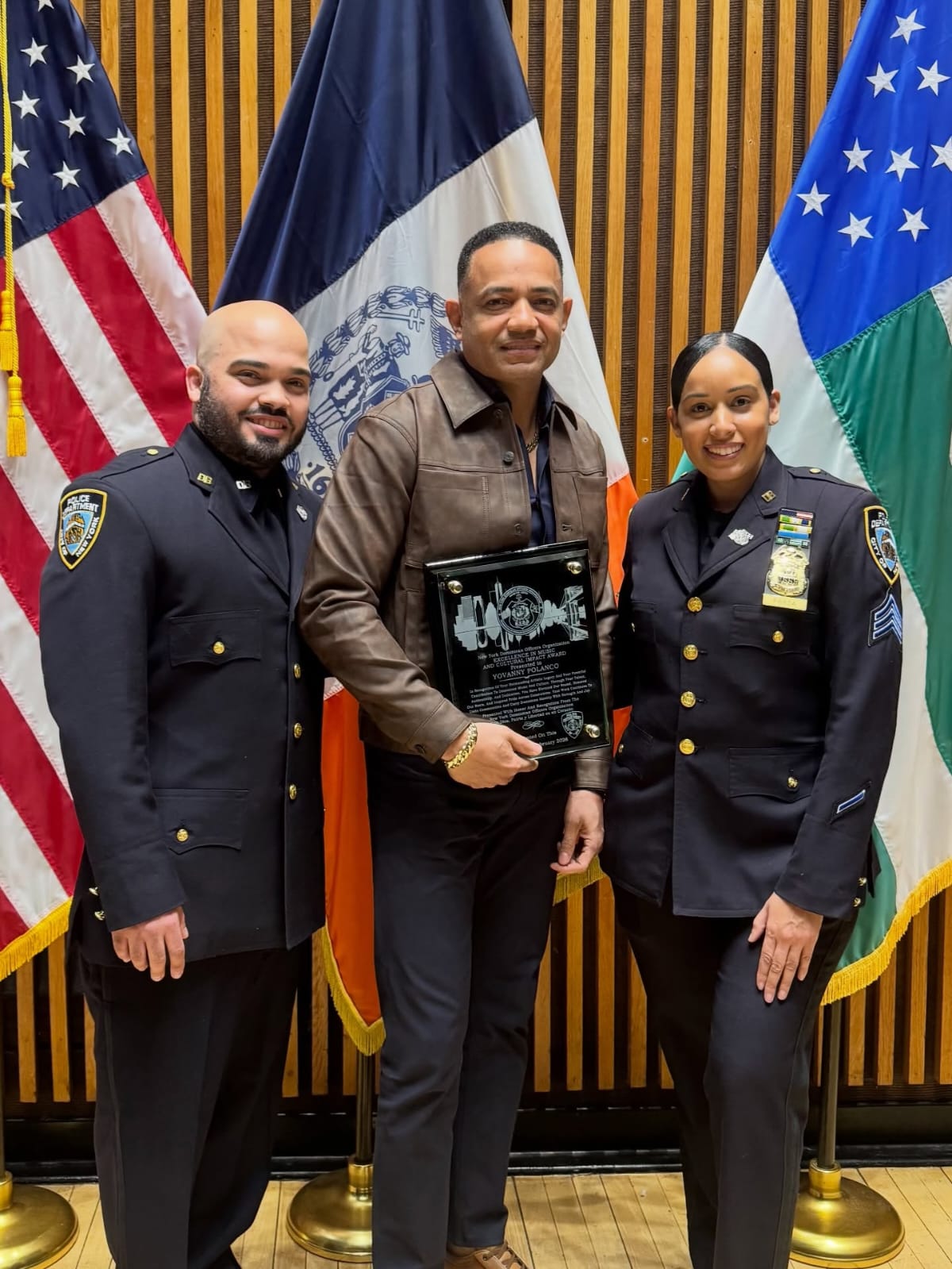 El merenguero típico Yovanny Polanco fue reconocido en la ciudad de Nueva York por miembros de la Policía Nacional Dominicana en el exterior, en el marco de las actividades conmemorativas del 182 aniversario de la Independencia Nacional.